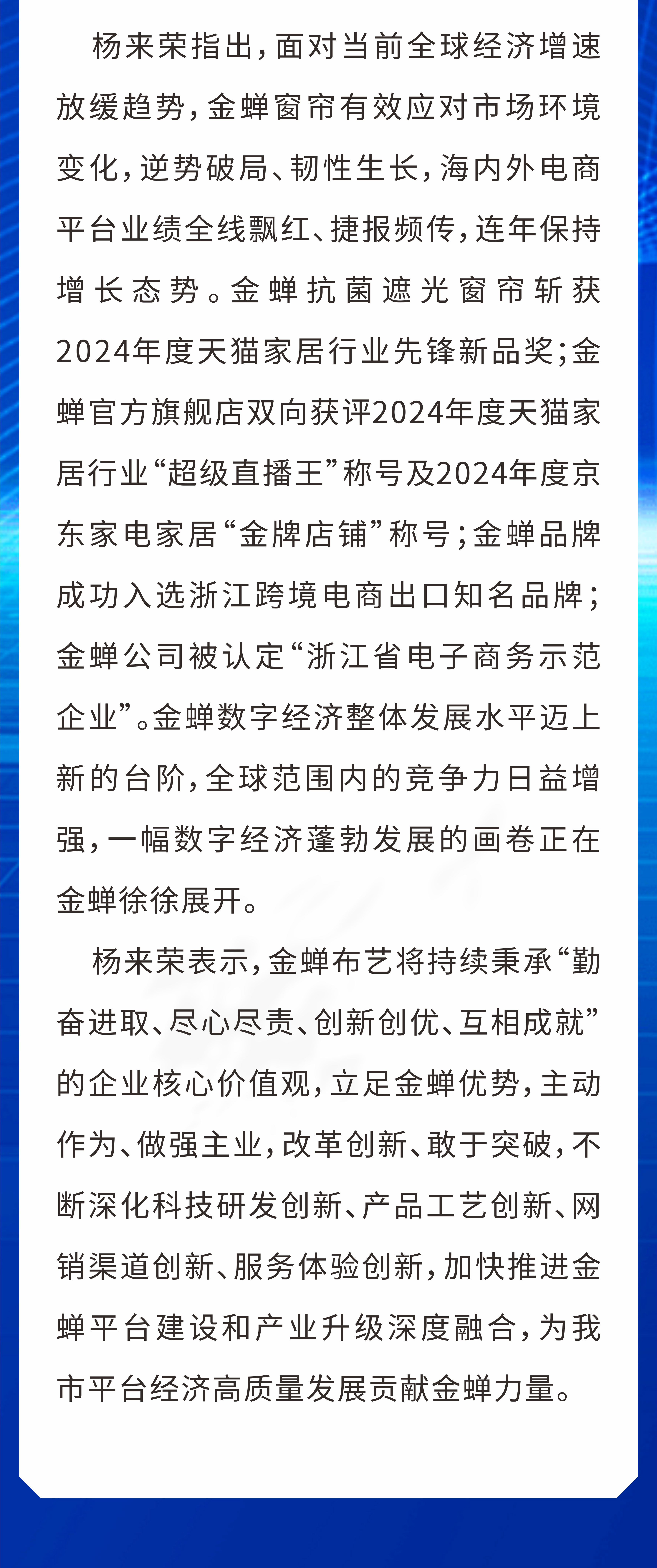 - 【JINCHAN金蟬窗簾】關(guān)注!圍繞平臺經(jīng)濟高質(zhì)量發(fā)展,金蟬布藝在全市大會上交流發(fā)言! 2025-09-23